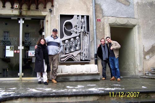 L'équipe (une partie) devant le Muséum HR Giger.